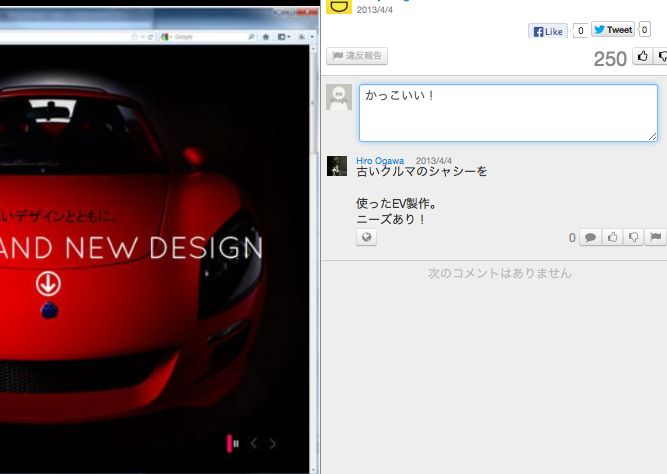 コンテンツボックスをクリックすると、より広いエリアで内容を読むことができます。コンテンツのコメントや、Facebookの「いいね!」Twitterのリンク投稿をおこなうことが可能です。