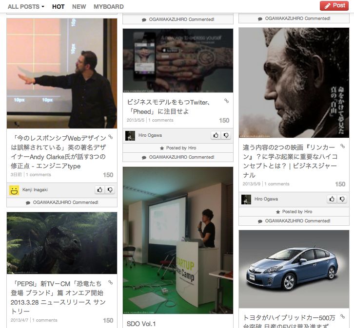 皆様がアップしたコンテンツはコンテンツボックスとして画面(時系列および閲覧者の評価が高い順)に掲載されます。スマートフォンやタブレットでの閲覧にも最適化されています。