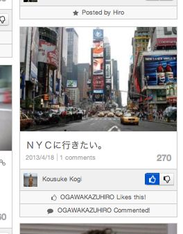 コンテンツボックス左下の「いいね!」をクリックすることで、コンテンツへの評価をつけることができます。一定期間で高い評価を得たコンテンツがサイトの上部に表示されます。